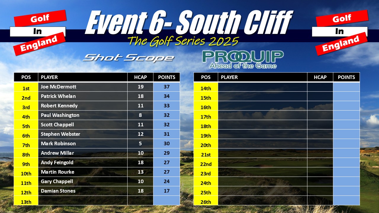 Congratulations to Joe McDermott, winning our sixth event with 37 stableford points.